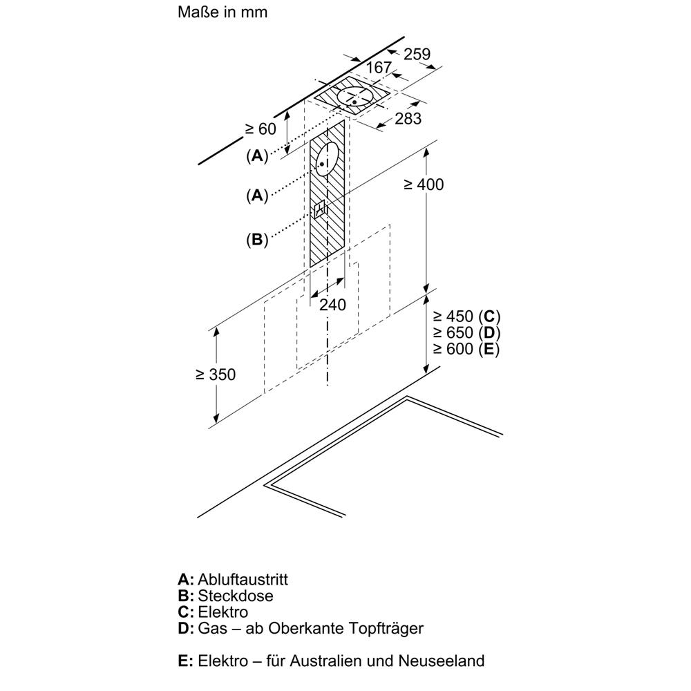 • Gerätemaße Abluft (HxBxT): 883-1126 x 590 x 433 mm