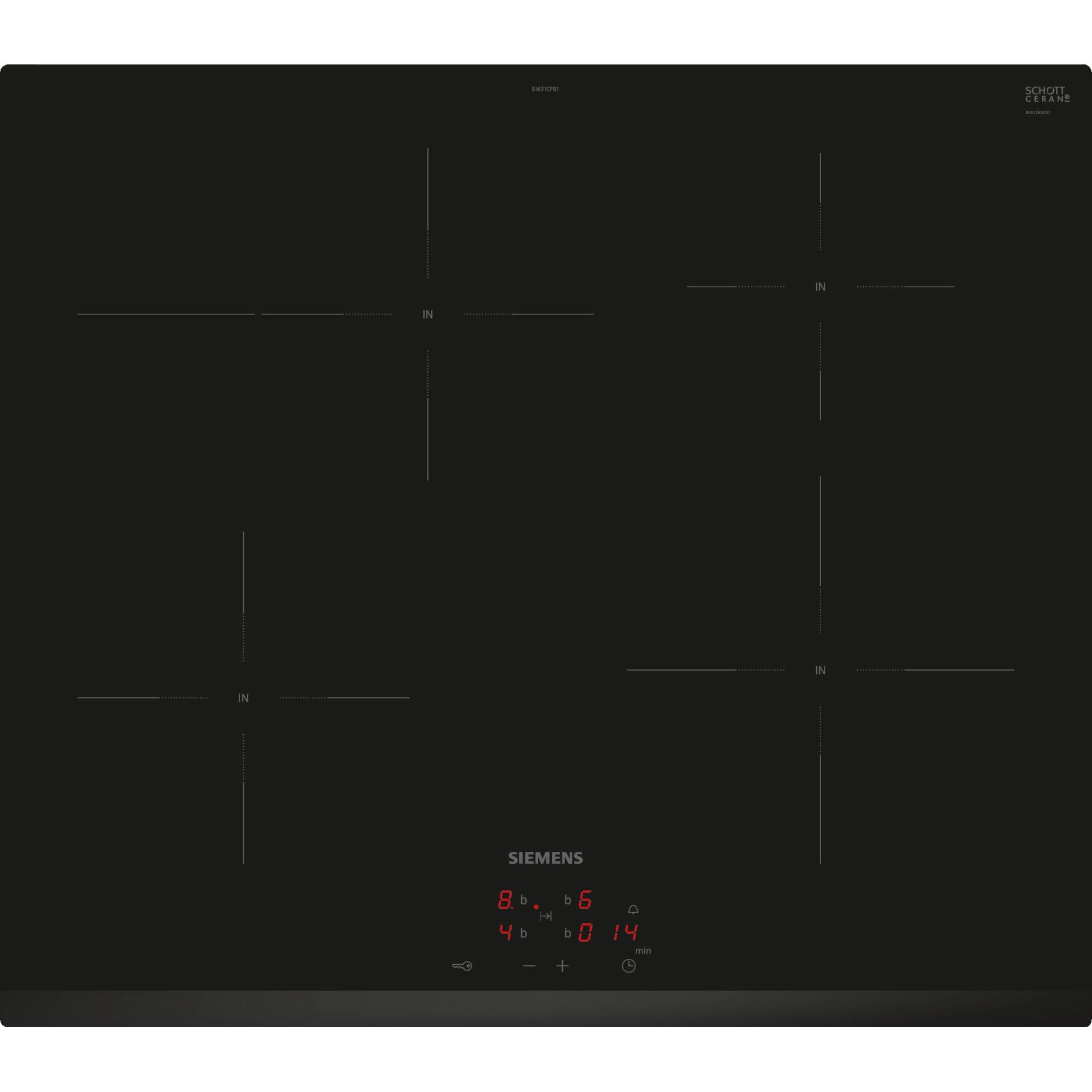 EI631CFB1E iQ300, Induktionskochfeld, 60 cm, herdgesteuert, Schwarz, Rahmenlos aufliegend