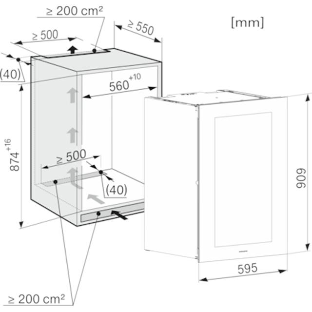 Nischenbreite minimal560 mm