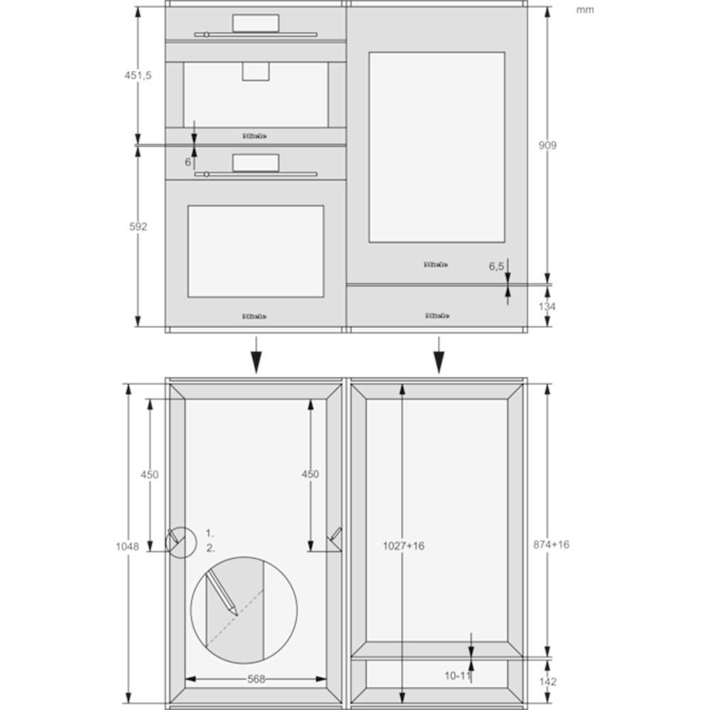 Nischenhöhe minimal874 mm