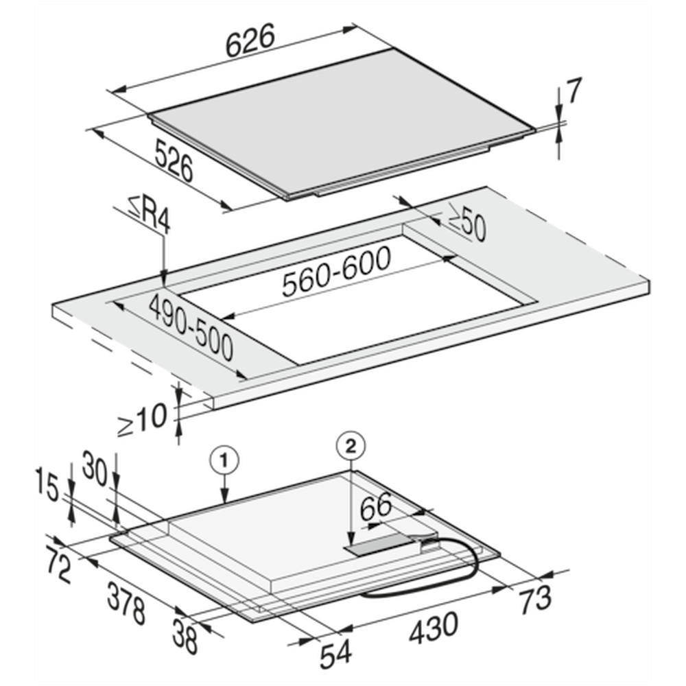 • In 626 mm Breite mit Edelstahlrahmen für aufliegenden Einbau