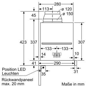 - Abluftausgang Ø 150 mm (Reduzierstück Ø 120 mm beiliegend)