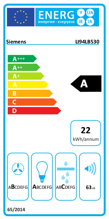 Energieeffizienzklasse ... auf einer Skala von A+++ (höchste Effizienz) bis D (geringste Effizienz)