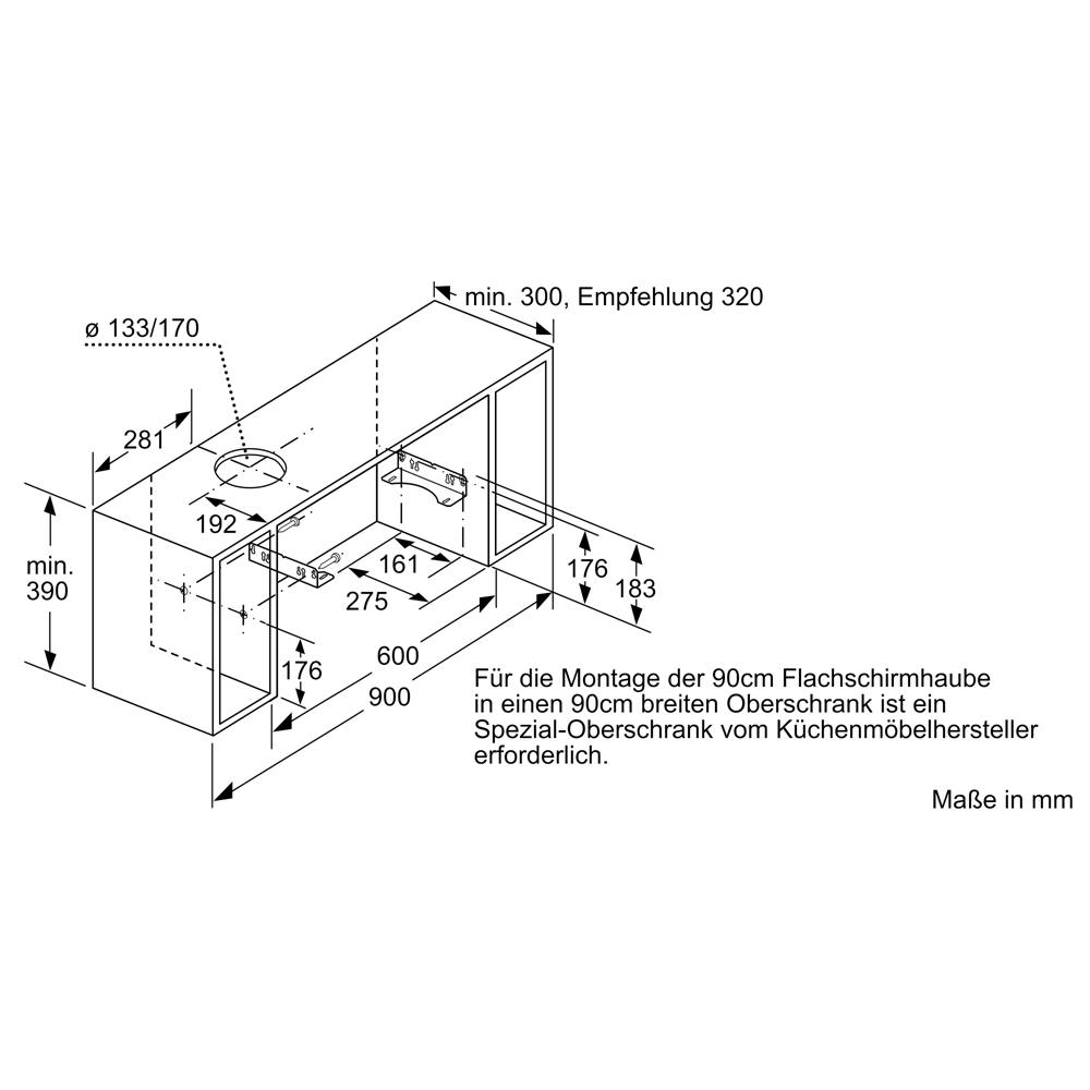 • Einbaufähig in 60 oder 90 cm breiten Oberschrank. Bei einem 90 cm Oberschrank wird das Sonderzubehör LZ49200 benötigt.