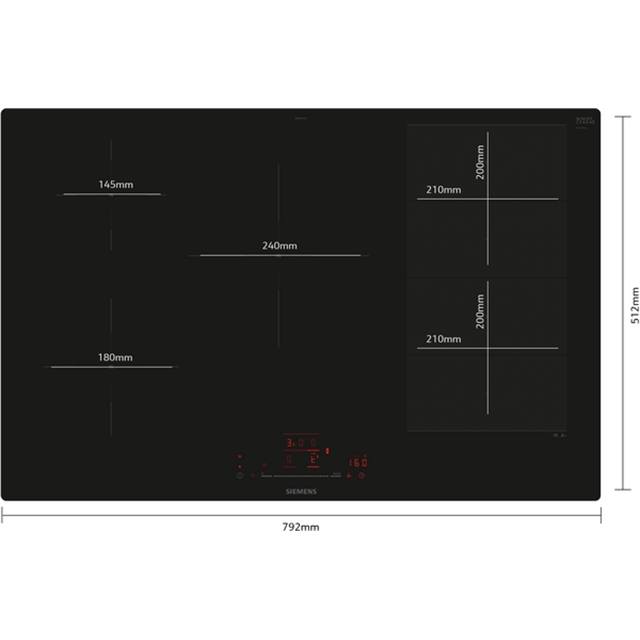 - Automatisches Verbinden / Teilen: Wird großes Kochgeschirr auf die Flex Zone gestellt, verbindet das Kochfeld automatisch zwei Kochzonen zu einer großen, durchgehenden Zone.