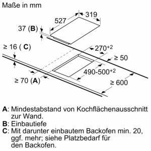 - Erforderliche Nischenmaße (HxBxT mm): 37 x 270 x (490 - 500)