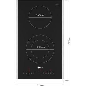 - Kochzone vorne: 120 mm, 180 mm, 1 kW (max. Leistung 2.3 kW)